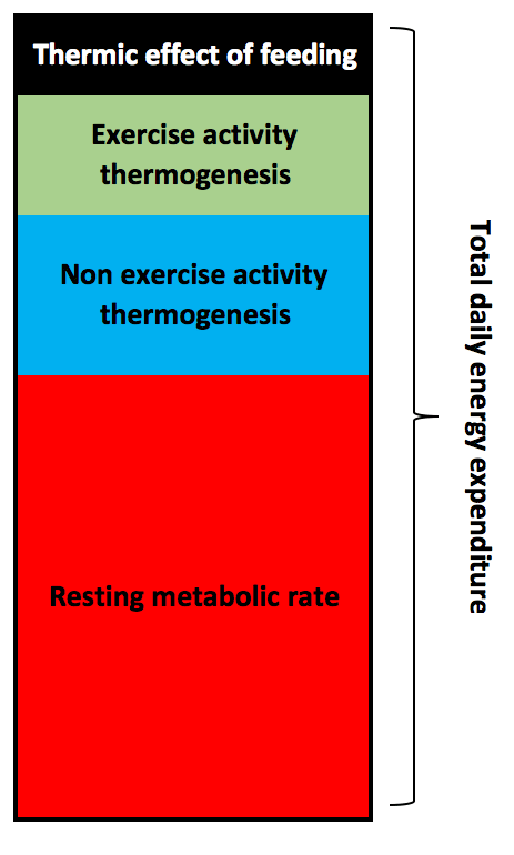Energy Expenditure (EE) = Resting Metabolic Rate (RMR) + Non-exercise Activity Thermogenesis (N.E.A.T) + Physical Activity (PA) + Thermic Effect of Food (TEF)