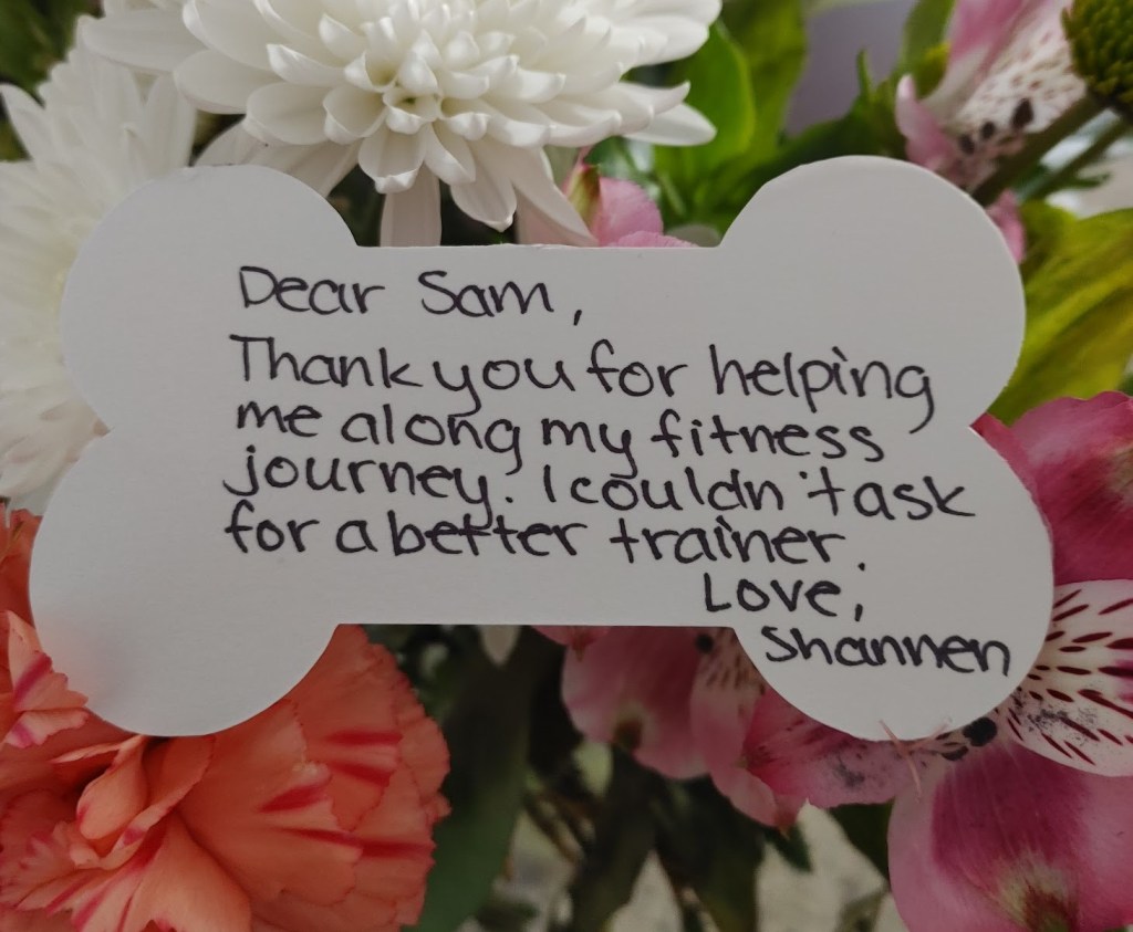 “I can’t express enough how grateful I am for Sam. After my postpartum journey I felt overwhelmed and tried everything to lose weight, bounce back and get back into fitness. Sam provided not only expert guidance tailored to my needs but also encouragement and support that made all the difference. Her understanding of my challenges both physically and mentally helped me regain my strength and confidence. I truly appreciate her dedication to fitness and to women. She had such a positive impact on my life and I highly recommend her services! 10000/10 HIGHLY recommend!” – Briaa B